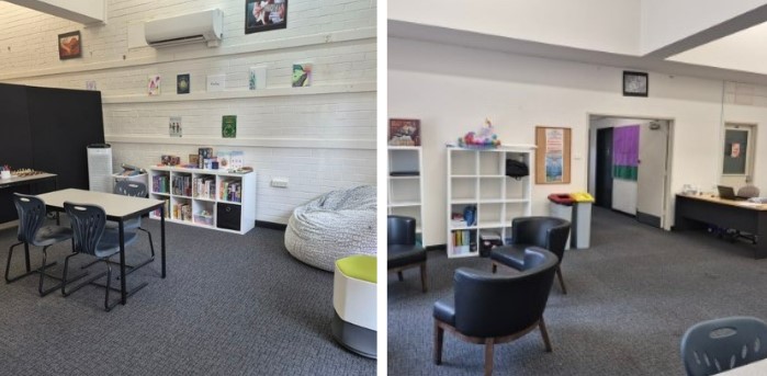 The area features a wide range of resources, many of which were generously donated by members of our school community at the end of 2025. These include card and board games, puzzles, mindful colouring books, LEGO, and a variety of fidget tools to support regulation and focus. Comfortable seating such as a Kloudsac allows students to relax and reset, while designated tables and chairs provide an appropriate environment for students completing assessments under Special Assessment Arrangements. Lockers have also been installed for select students to support organisation and independence.
