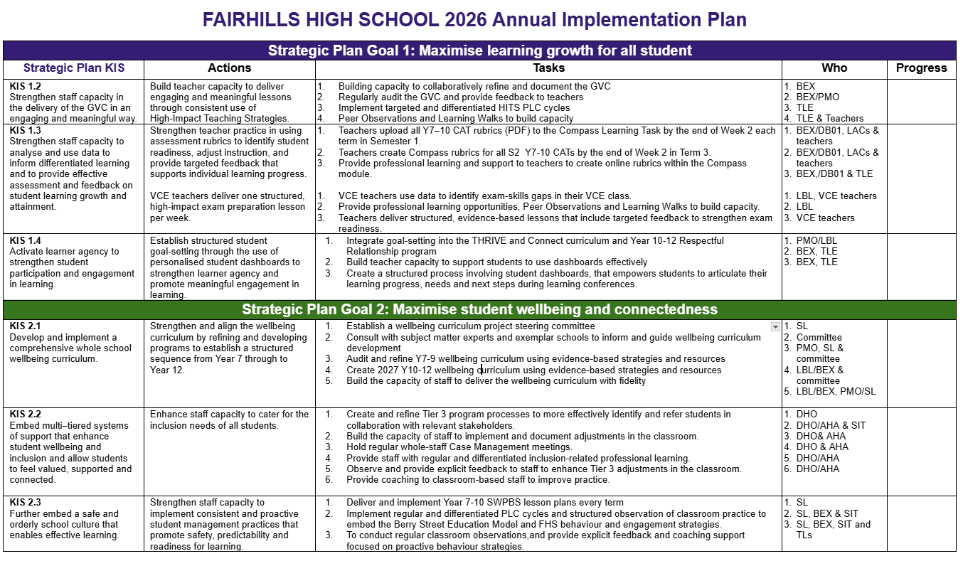 With the endorsement of our Annual Implementation Plan (AIP) by the School Council on February 25, we officially begin the first year of our new 2026–2029 Strategic Plan. This AIP serves as the critical bridge between our long-term vision and our daily practice, ensuring that every key action taken in the school, from classroom innovation to wellbeing, supports our new four-year targets.