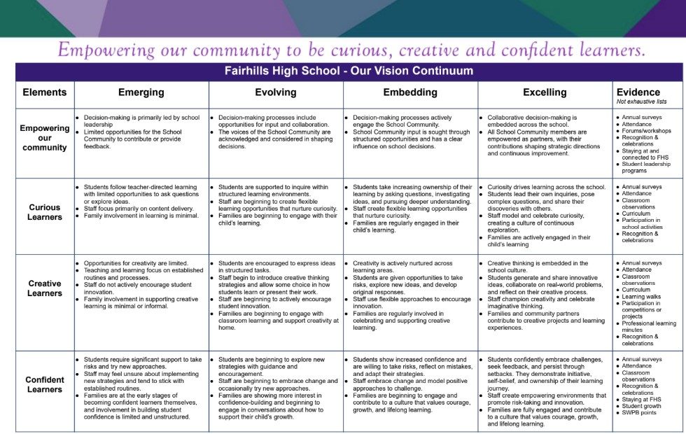 We’re excited to share with you the final version of our School Vision Continuum. This has been created with input from staff, students, and families, making sure it truly reflects our shared values as a community.